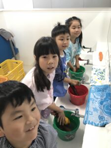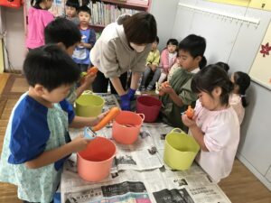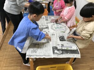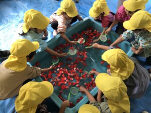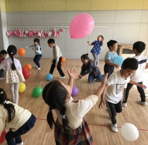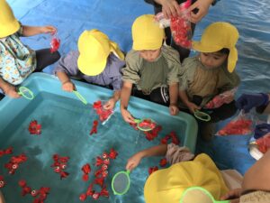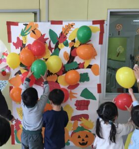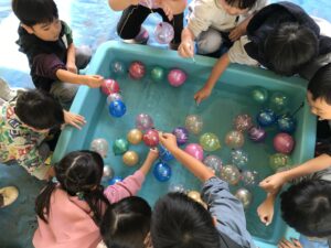 風船で遊んだ後は、ほしぐみさんが葉っぱを