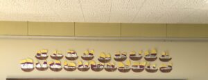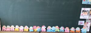 その上に黄色のお花紙を手でちぎって糊で貼りました