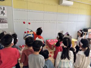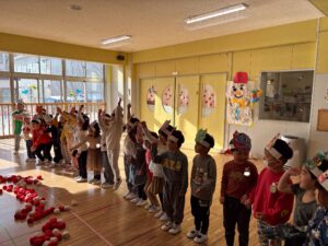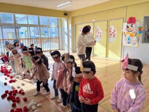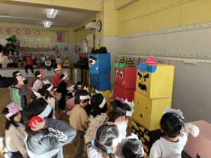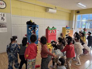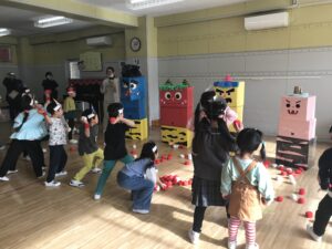 鬼を前に、少し緊張していた様子のロケットぐみ